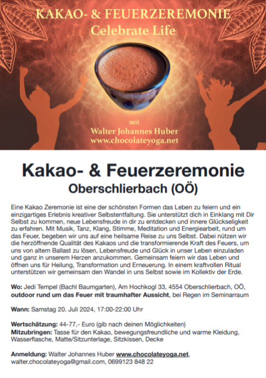 « Alle Veranstaltungen Diese Veranstaltung hat bereits stattgefunden. Kakao und Feuerzeremonie Juli 20, 2024 @ 17:00 - 22:00 « Amanita Muscaria Garten der Genesung » Zum Kalender hinzufügen Google Kalender iCalendar Outlook 365 Outlook Live Details Datum: Juli 20, 2024 Zeit: 17:00 - 22:00 Veranstalter Verein Sonnenwasser Telefon +43 664 39 38 930 E-Mail office@sonnenwasser.at Veranstalter-Website anzeigen Veranstaltungsort Kräutersaal Hochkogl 33 Oberschlierbach, Oberösterreich 4554 Österreich Google Karte anzeigen Telefon +43 664 39 38 930 Veranstaltungsort-Website anzeigen Kommentar absenden Antwort abbrechenDeine E-Mail-Adresse wird nicht veröffentlicht. Erforderliche Felder sind mit * markiertKommentar * Name * E-Mail * Website Meinen Namen, meine E-Mail-Adresse und meine Website in diesem Browser für die nächste Kommentierung speichern.